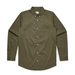 Long sleeve button up shirt, button-down collar, chest pocket, clear buttons, adjustable cuffs