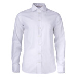 Contrast fabric at cuffs, placket and inside collar.